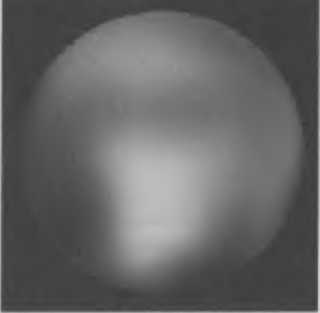 Рис. 7.7. Наиболее четкое изображение Плутона, полученное по снимкам космического телескопа «Хаббл». Пока трудно судить, что представляют собой эти пятна на поверхности. Загадочное яркое пятно в центре, судя по цвету, покрыто замерзшей окисью углерода. Детали поверхности Плутона мы увидим в 2015 г., когда к нему приблизится зонд «New Horizons» (NASA).