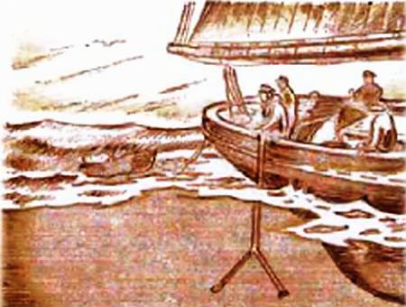 Но звукоуловители применяются и сегодня. Стоят они на каждой подводной лодке, а свою историю ведут с той же Первой мировой войны, когда появились подводные лодки и возникла задача обнаруживать их под водой. На рисунке 4 вы видите простейший гидрофон-радиопеленгатор с двумя приемниками. Действует он так же, как и простейший звукоуловитель. Только скорость звука под водой 1400 м/с. Это означает, что длина его волны в воде почти в пять раз больше, чем на воздухе. Поэтому расстояние между приемниками гидрофона всегда оказывалось больше длины звуковой волны, от чего точность определения направления на источник звука не превышала 12–15 градусов.