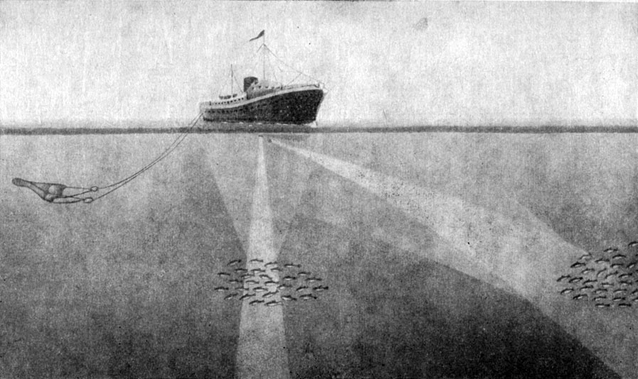 Еще сравнительно недавно рыбак, закидывающий сеть в открытом море, был подобен охотнику, стреляющему в тумане в неизвестно какую дичь. Сейчас положение понемногу меняется. Наука и техника постепенно разрабатывают и совершенствуют "стратегию" и "тактику" морского рыбного промысла.
