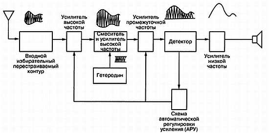 Большинство схем AM являются супергетеродинными приемниками благодаря наличию внутреннего генератора (гетеродина) и каскада смесителя (рис. 6.2).