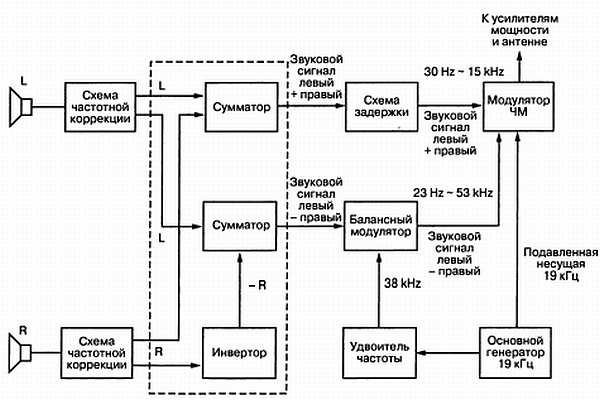 Рис. 6.7. Бок-схема стереопередатчика ЧМ