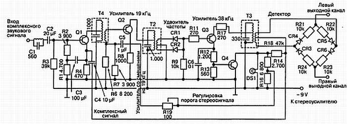 Рис. 6.12. Схема стереодекодера с электронным переключением