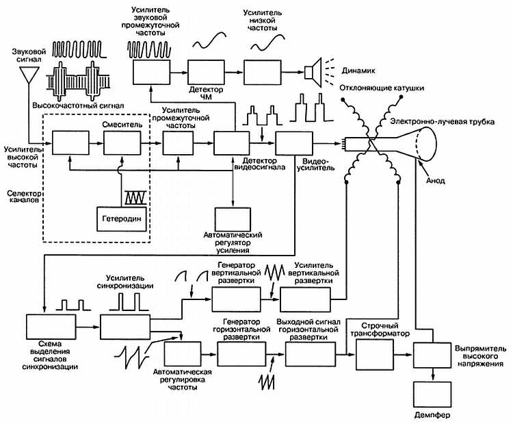 Рис. 6.18. Блок-схема черно-белого телевизионного приемника