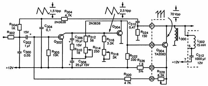 Каждый раз, когда сканирующий луч перемещается слева направо, он должен вернуться назад. Это называется обратным ходом строки. Когда сканирующий луч достигает нижней точки экрана, он должен быстро вернуться на верхнюю часть экрана. Это называется обратным ходом по кадру. В это время экран черный. Только во время сканирования видно изображение. Генератор развертки по вертикали с частотой 50 Гц отклоняет сканирующий луч вверх. Генератор горизонтальной развертки с частотой 15 625 Гц отклоняет сканирующий луч слева направо по экрану.