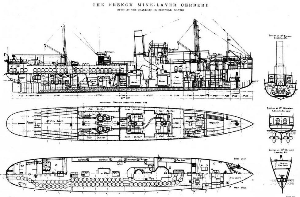 Минный заградитель "Сервер", 1913 г. (схема из журнала "The Engineer")