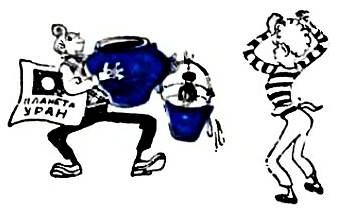 — Как что? — невозмутимо ответил Боба Белоручкин. — Материалы для получения атомной энергии. Это атомный котел, это тяжелая вода, еле притащил… А это уран, — добыл в папиной энциклопедии.