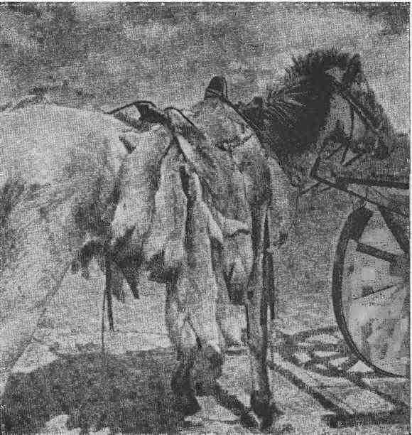 В другой юрте нам показывают местные капканы: два железных смыкающихся полукружия хватают животное за ногу. В степях промысел с капканами ведется иначе, чем в северных лесистых краях. Здесь кочевники могут заняться охотой лишь после того, как кончится скотоводческая страда. Капканы расставляются главным образом поздней осенью и зимой. В них ловят волков, тарбаганов, антилоп, барсуков и многих других мелких зверьков. Меха скупаются государством, и платят за них хорошо.