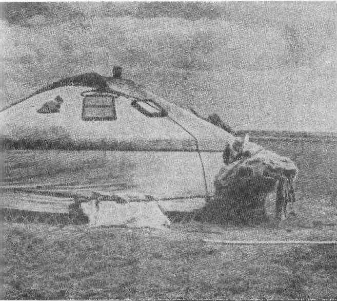 На луга медленно спускаются сумерки. Сборщицы навоза разошлись в разные стороны; спешат к своим юртам. Из дверных отверстий юрт не пробивается ни луча света; они старательно закрыты. А после того, как потухнет огонь в очаге, закроют дымовое отверстие, и люди лягут спать.