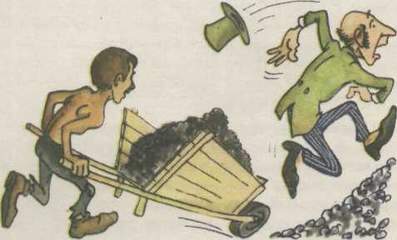 Самолюбия Мише было не занимать. Он выпрямился, отбросил в сторону лопату, развернул тачку и лихо покатил ее прямо на своего обидчика. Тот испуганно отскочил в сторону, но пятидесяти пудовая "коза", управляемая сильными руками юноши, преследовала его по всему рудному двору, пока в конце концов не прижала к рудной насыпи. Проворно, как обязьяна, директор банка вскарабкался на самый верх ее. А Курако, остановившись перед насыпью, на чистейшем французском языке с нескрываемой издевкой объяснил ему, что во всем, якобы, виноват "паркет" (так назывался настил рудного двора), что кругом ямы и выбоины — тачка поэтому вырывается из рук. Инцидент пришлось замять, а двор вскоре замостили новыми плитами.