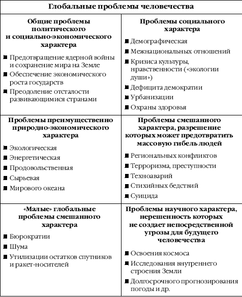 9. Каким образом можно классифицировать глобальные проблемы человечества? Обоснуйте принципы их классификации.