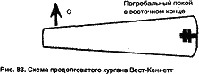Продолговатые курганы создавались якобы как места погребения, но предназначенная для могилы доля занимает не больше одной восьмой части в большинстве таких могильных холмов. Этому так и не было найдено удовлетворительного объяснения, и остальная часть холма, казалось, не имела никакого практического назначения. Однако он определенно мог быть использован как топографическая платформа. Озадачивают и некоторые аспекты самих захоронений. Возникает такое впечатление, будто кости до захоронения были очищены от плоти, да и не хватает некоторых частей скелета. Имеются и данные о том, что курганы служили коллективными захоронениями на протяжении значительного времени.