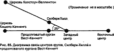 Изначально я занялся изучением восточного круга. Я также исходил из того, что первичная реперная линия совпадала с линией визирования двух центров. Это оказалось не так. По чистой случайности я обнаружил, что целый ряд простых угловых связей углов в 20°, 40°, 50°, 60° и 90° был привязан к продолговатому кургану Ист-Кеннетт. Я ликовал. Потребовалось лишь небольшое усилие, чтобы сделать это открытие после того, как были вычислены все угловые соотношения.