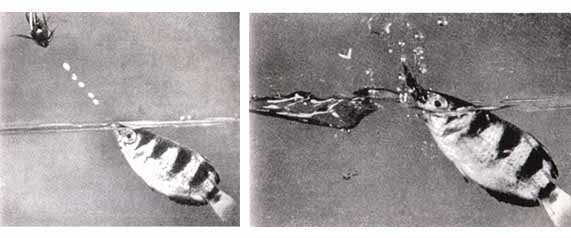 Рыбка-снайпер. Поразив цель короткой очередью, хватает добычу, прежде чем та успевает коснуться воды.