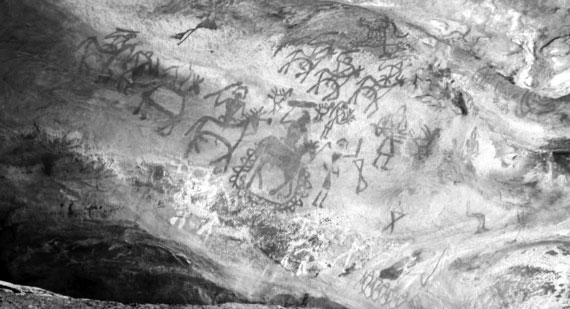Древние рисунки на стенах скальных жилищ в Бхимбетке