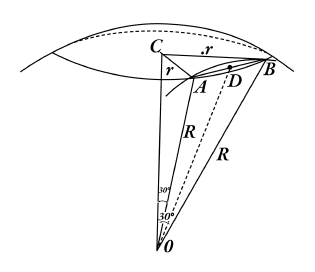 значит, r=R/2 Длина дуги АВ составляет одну шестую длины круга широты, а так как круг этот имеет вдвое меньшую длину, чем большой круг (соответственно вдвое меньшему радиусу), то длина дуги малого круга