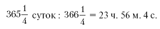 Итак, звездные сутки в среднем короче солнечных на 3 м. 56 с, круглым счетом – на 4 м. Разница не остается постоянной, потому что: 1) Земля обходит около Солнца не равномерным движением по круговой орбите, а по эллипсу, в одних частях которого (более близких к Солнцу) она движется быстрее, в других (более отдаленных) – медленнее, и 2) ось вращения Земли наклонена к плоскости ее орбиты. Обе эти причины обусловливают то, что истинное и среднее солнечное время в разные дни расходятся между собой на различное число минут, достигающее в некоторые дни до 16. Только четыре раза в год оба времени совпадают: