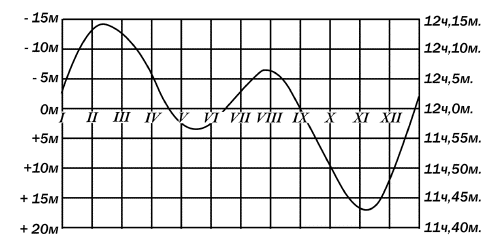 разница между истинным и средним временем достигает наибольшей величины – около четверти часа. Кривая на рис. 7 показывает, как велико это расхождение в разные дни года.