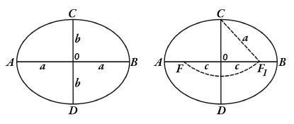 Познакомимся немного с геометрией эллипса. В эллипсе (рис. 17) AB – его «большая ось», CD – «малая ось». В каждом эллипсе, кроме «центра» O, есть еще две замечательные точки – «фокусы», лежащие на большой оси симметрично по обеим сторонам центра. Разыскивают фокусы так (рис. 18): раздвигают ножки циркуля на расстояние большой полуоси OB и, установив острие в конце C малой оси, описывают дугу, пересекающую большую ось. Точки пересечения F и F1 – фокусы эллипса. Расстояния OF и OF1 (они равны) обозначаются обыкновенно буквой c, а оси, большая и малая, через 2а и 2b. Расстояние с, отнесенное к длине а большой полуоси, т. е. дробь с/а, служит мерой растянутости эллипса и называется «эксцентриситетом». Чем больше эллипс отличается от круга, тем эксцентриситет его больше.