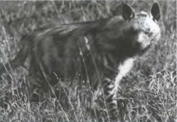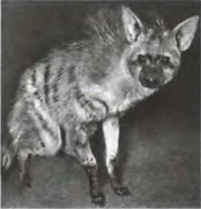 Полосатая гиена (Hyaena hyaena) встречается на всей территории от Северной Африки до Средней Азии. Ее задние ноги короче передних, поэтому гиена кажется несколько приплюснутой