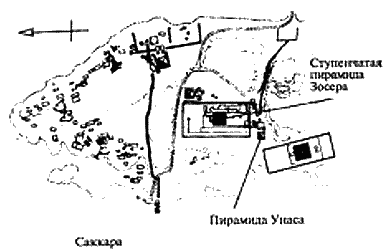 Через полтора десятка километров от Великой пирамиды мы свернули с магистрали, чтобы посетить некрополь Саккары. Здесь над всем доминировала шестиярусная ступенчатая пирамида — зиккурат фараона III династии Зосера. Этот высящийся на краю пустыни внушительный монумент (около 60 метров в высоту) датируется приблизительно 2650 годом до н. э. Он стоит посреди территории, огороженной элегантной стеной, и считается у археологов самым древним сооружением из массивного камня. Согласно преданию, его создателем является легендарный Имхотеп, «Великий маг», верховный жрец Гелиополя, другими титулами которого были: Мудрец, Чародей, Астроном и Врач.