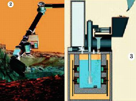 2. Механическая рука. 3. Анализ грунта в бортовой лаборатории.