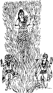 Бог-разрушитель Шива является в столпе небесного огня (инд. картинка)
