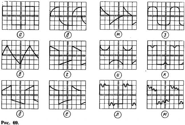 А вот два примера изображения выходного импульса (рис. 69, л, м), когда в усилителе есть резонирующие цепи.