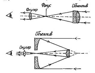 Телескопы. схемы линзового рефрактора и зеркального рефлектора