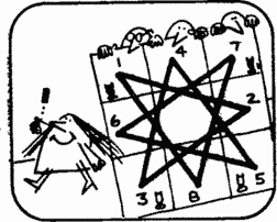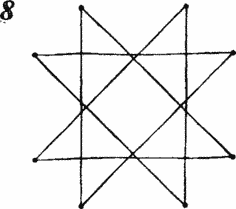 Метод нитей и пуговиц позволяет проанализировать одну старинную игру. Для нее нам понадобится особая «доска» — звездчатый граф, изображенный на рис. 8, и семь монет или небольших фишек.