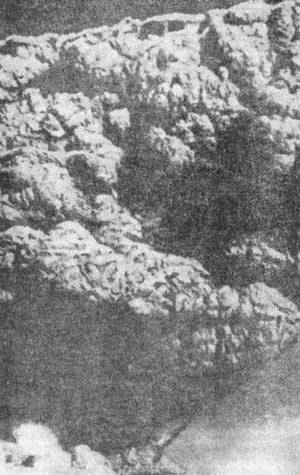Но полное представление о происшедшей катастрофе было получено лишь после того, как удалось побывать около вулкана. Безымянный неузнаваемо изменился. Из правильного, слегка усеченного конуса он превратился в полукольцевую кальдеру. Древний купол, приподнятый еще на первой стадии извержения, теперь отсутствовал. На месте вершины и юго-восточного склона горы зиял огромный кратер в виде полукольца размером 1500х2000 м. Вершина вулкана была снесена взрывом. Высота его уменьшилась почти на 200 м (рис. 18).