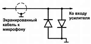 Рис. 7.5. Схема для защиты входа микрофонного усилителя