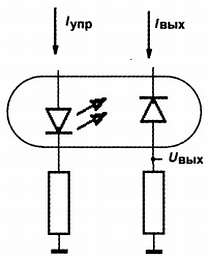 Самый простой вариант такого прибора — диодная оптопара (рис. 7.6), которая обычно служит для электрически изолированной передачи линейных сигналов (например, звуковых колебаний или уровней постоянного тока в регулирующих устройствах). В ней обратный ток (Iвых) приемного диода линейно зависит от управляющего тока через светодиод (Iупр). Обратите внимание, что рабочая полярность у фотодиода обратная, чем у обычного диода, поэтому у таких компонентов, если они выпускаются в отдельном корпусе, плюсом помечен катод, а не анод.
