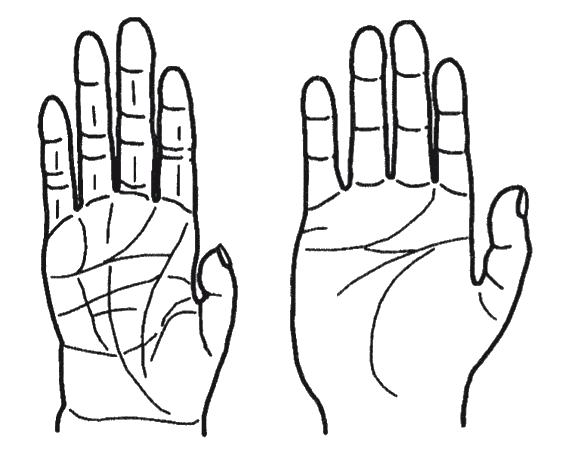 Прочитав предупреждение, положите одну ладонь на ровную поверхность тыльной стороной вниз. Согните мизинец, постаравшись дотронуться им до ладони. Обратите внимание на то, что вместе с мизинцем приподнялся и безымянный палец, причем его движение происходит автоматически, независимо от вашей воли. И точно так же, если сгибать указательный палец, то вслед за ним двинется и средний. Это происходит по той причине, что рука в процессе эволюции приспособилась для захвата, а захватывать что-либо с минимальными усилиями и с максимальной скоростью можно, если пальцы связаны с одним и тем же механизмом. В нашей руке механизм захвата «возглавляет» мизинец. Если поставить себе задачу быстро сжать пальцы по очереди так, чтобы они касались ладони, то гораздо удобнее начинать с мизинца и закончить указательным пальцем, а не наоборот.