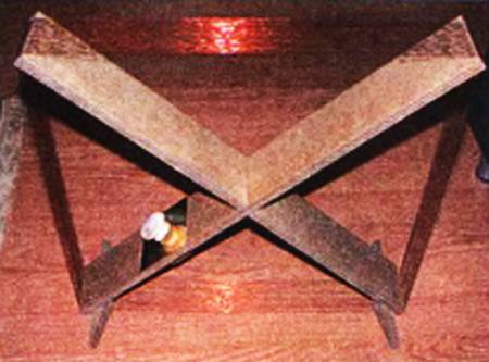 С этой целью я подобрал две деревянных рейки длиной 100 и 120 см, скрепил их в середине винтом, а по концам набил по 12 мелких гвоздиков примерно через 0,5…0,7 см. На получившуюся крестовину намотал по гвоздикам ромбическую плоскую рамку из 12 витков провода ПЭЛ 0,3. Со стандартным КПЕ 17…500 пФ антенна с запасом перекрывает весь СВ-диапазон.