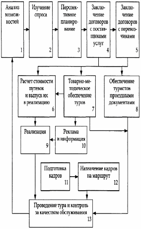 Рис. 8. Этапы (1–13) организации работы туроператора по разработке тура
