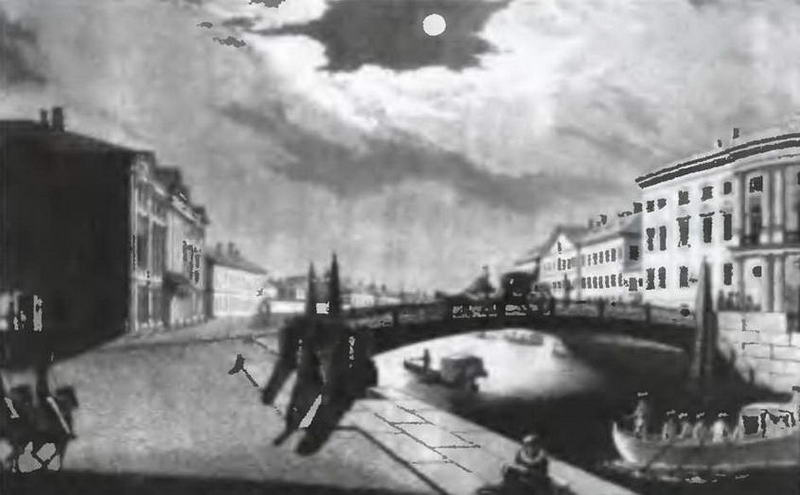 М.-Ф. Дамам-Деморте. Вид реки Мойки у Полицейского моста е Санкт-Петербурге. 1812 год