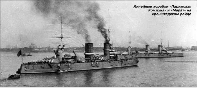 Линейные корабли «Парижская Коммуна» и «Марат» на кронштадском рейде.
