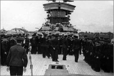 Линкор «Октябрьская Революция». Траурный митинг по случаю смерти А.А. Жданова, 1 сентября 1948 г.