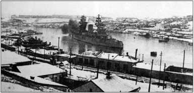Линейный корабль «Парижская Коммуна» в Южной бухте Севастополя, зима 1941/42 г.