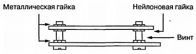 Для крепления печатной платы на некотором расстоянии от корпуса и от других плат используются стойки из различных материалов. Если под рукой нет стоек подходящего размера, можно воспользоваться длинными винтами диаметром 3 мм (такие винты обычно наиболее удобны) с гайками для крепления плат на нужном расстоянии от корпуса (рис. 3.19). Со стороны металлизации печатной платы лучше использовать гайки из нейлона (или подложить под металлическую гайку изолирующую шайбу), чтобы изолировать винты от дорожек, проходящих вблизи крепежных отверстий.