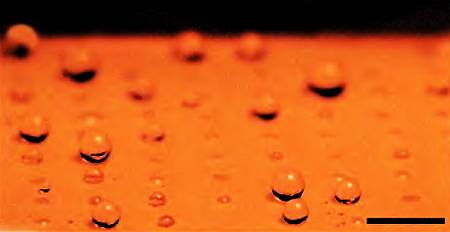 Этот патент природы заинтересовал ученых из Массачусетского технологического института. Майкл Рабнер, разработчик новых материалов, и инженер-химик Роберт Коэн, вместе со своими коллегами создали специальное водоотталкивающее покрытие. Попавшая на него вода собирается в капли почти идеально круглой формы. Это покрытие нанесли на стекло, сделав на нем мельчайшие канавки и желобки, а также специальные «спойлеры» с водоотталкивающим покрытием, похожим на тефлон, для лучшего стока.