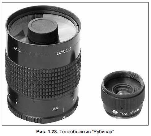 Зеркально-линзовые объективы (рис. 1.28) построены по такой оптической схеме, что падающий луч света, многократно отражаясь внутри объектива, проходит путь, равный фокусному расстоянию объектива. В нашей стране выпускаются объективы с фокусным расстоянием 500 и 1000 мм, соответственно их названия МТО 500 и МТО 1000. Поскольку такие объективы разрабатывались для отечественных камер во времена, когда камеры не имели систем автофокуса, обе модели рассчитаны на ручную фокусировку. Несмотря на это, они являются весьма качественными объективами, но имеют фиксированную встроенную конусовидную диафрагму с фиксированными значениями для 500 мм — 8, для 1000 мм — 10, поэтому их применение ограничено условиями освещенности. А изменение экспозиции возможно только через изменение выдержки. То есть, съемку следует проводить в режиме приоритета диафрагмы, в этом случае у вас диафрагма фиксированная, а выдержка изменяется в зависимости от условий освещенности.