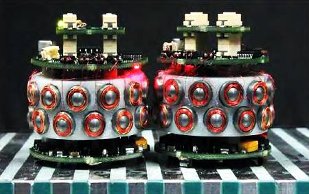Специалисты из Университета Карнеги-Меллона, с которыми сотрудничает Intel, показали с десяток разных опытных моделей клатомов, выполненных пока еще в достаточно большом масштабе. На них идет отработка первых этапов этой технологии. Пока что модельки, оснащенные электромагнитами, которые служат и для соединения, и для перемещения клатомов, ползают по столу и неким образом взаимодействуют между собой в очень примитивных вариантах — не больше 2–3 клатомов в одной «бригаде».