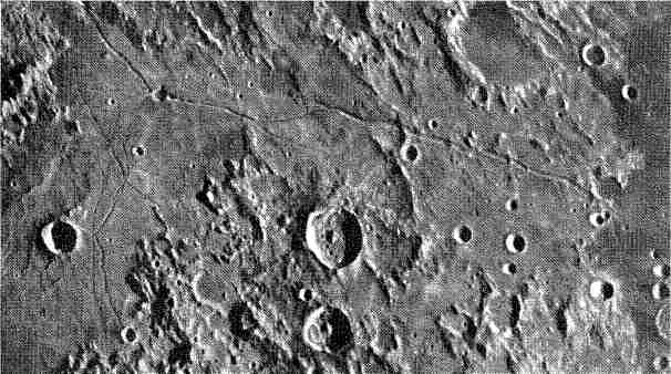 Рис. 3.41. Борозда Аридея, расположенная к западу от Моря Спокойствия, при наблюдении в телескоп с большим увеличением создает иллюзию насыпанной дороги на поверхности Луны.