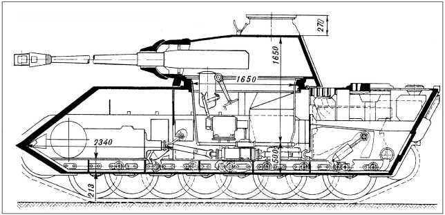 Увеличению высоты танка способствовало и неудачное решение элементов подвески, при котором торсионы, расположенные над днищем, занимали 213 мм высоты корпуса. Размещение над днищем 32 торсионов исключало возможность полезного использования объема между ними. Применение подобной подвески было вызвано стремлением повысить плавность движения и обеспечить, таким образом, ведение прицельного огня с ходу, не внедряя стабилизатор наведения, создать который немцы так и не сумели. Плавность движения действительно повысилась, но вести прицельный огонь с ходу было нельзя.