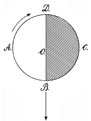 Рис. 4.28. Рисунок Ярковского, поясняющий предсказанный им термомеханический эффект.