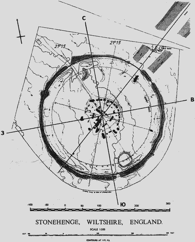 Стоунхендж по праву занимает особое место среди памятников древней истории Старого Света. Он есть Прецедент археоастрономии. Можно надеяться, что его конструкция хорошо известна историкам астрономии. Топография памятника опубликована в известных книгах [24, 87]. В последней публикации приведен стандартный плановый аэрофотоснимок Стоунхенджа. Топография Стоунхенджа восстанавливалась нами с использованием всех доступных материалов.