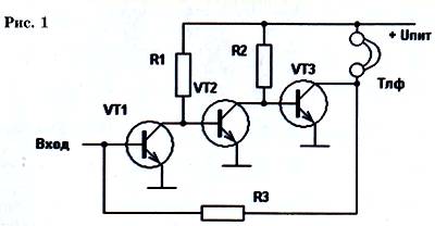 Как видим, коллекторный ток транзистора VT1 служит током базы VT2, а его коллекторный ток, в свою очередь, током базы VT3 и надобность в резисторах нагрузки отпадает. Все потребление определяется теперь током выходного транзистора VT3, который подбором резистора R3 выставляют в пределах 0,2…0,3 мА. Ток VT2 гораздо меньше, а ток VT1 — еще меньше.