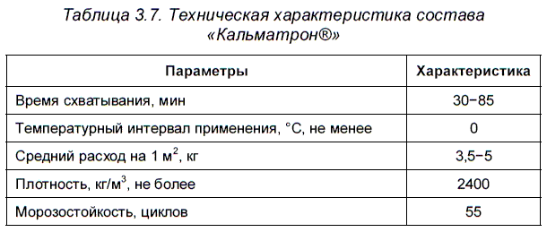 «Кальматрон®» можно использовать не только как гидроизоляционный состав проникающего действия, но и как добавку в цементосодержащие смеси — бетон и раствор (табл. 3.7).