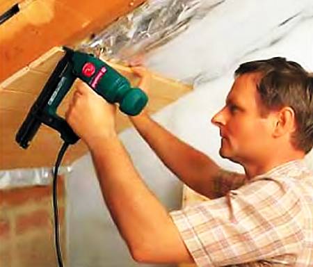 Работать скобозабивателем удобнее, чем молотком.